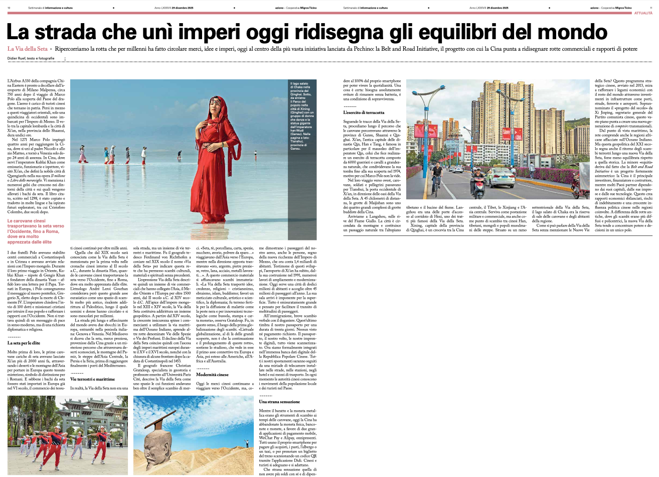 On the issue (December 29th, 2025) of Azione, you can look at the reportage about “The Silk Road in China”.