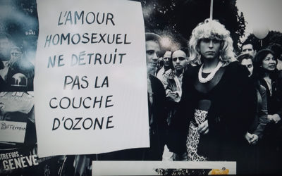 Last night, seated on my sofa, I was surprised to look at my picture of the Gay Pride parade on Léman Bleu Télévision in their tv program “Autrefois Genève”.
