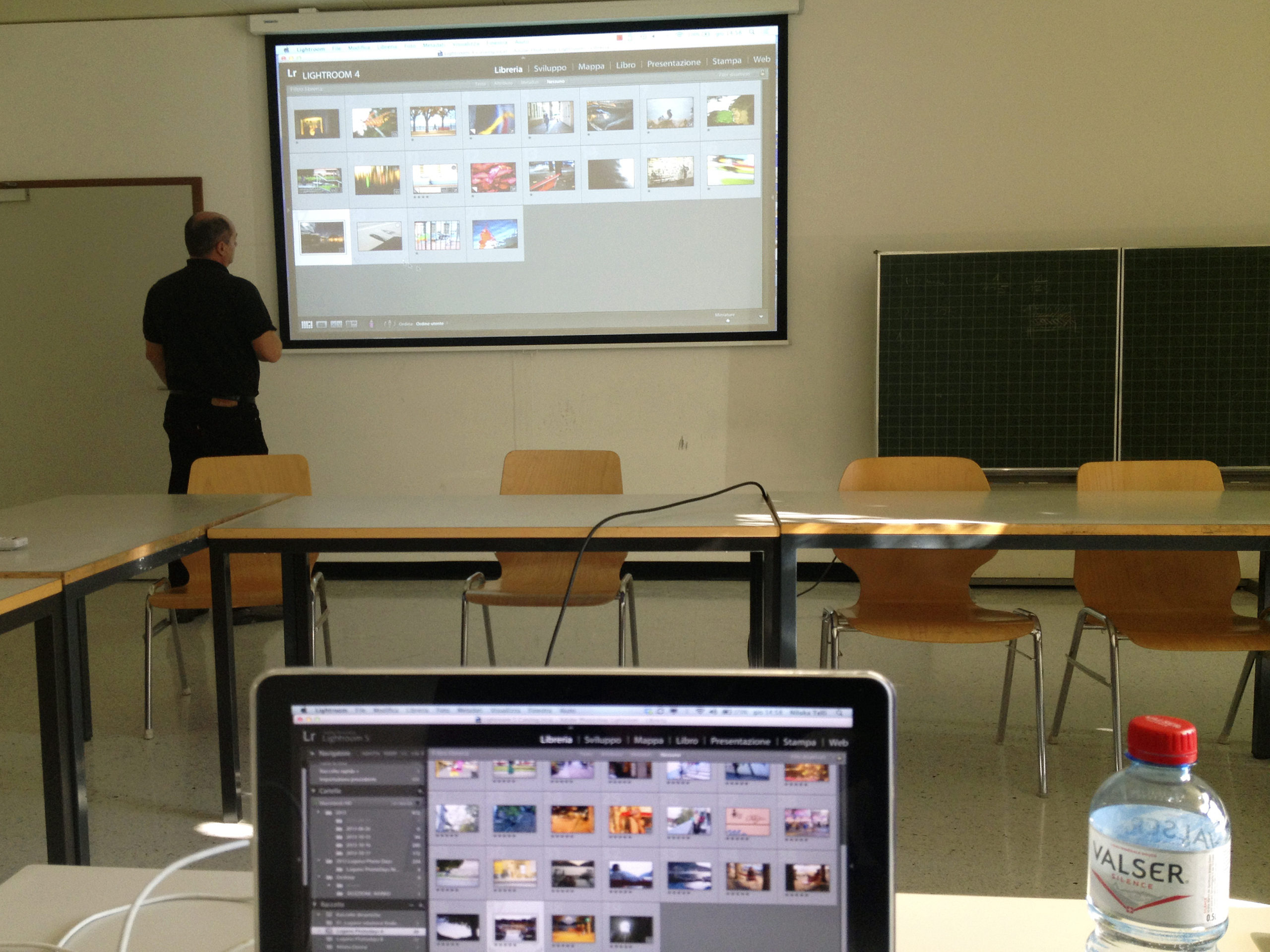 Didier Ruef edits pictures at CSIA (Lugano, Switzerland) during a photography workshop organized by LuganoPhotoDays.